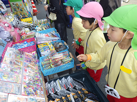 くじ、わたがし、チョコバナナ、はしまき、りんご飴・・・etc