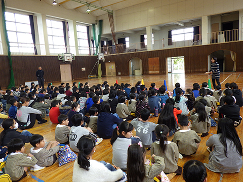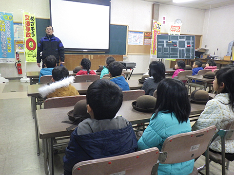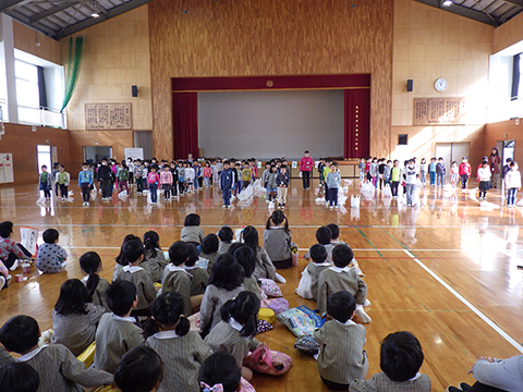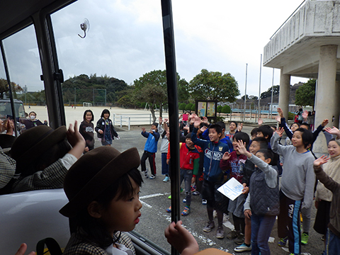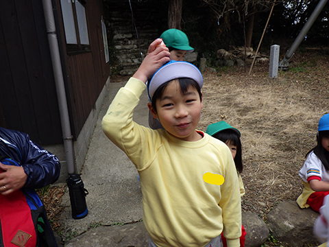 長ズボンを履いて、仮園舎を出発