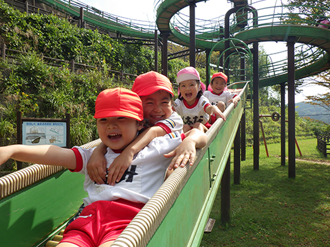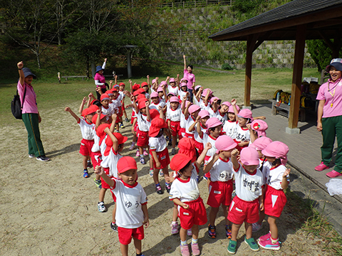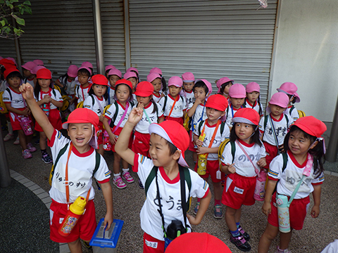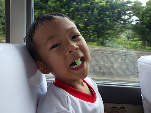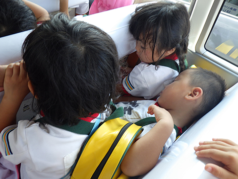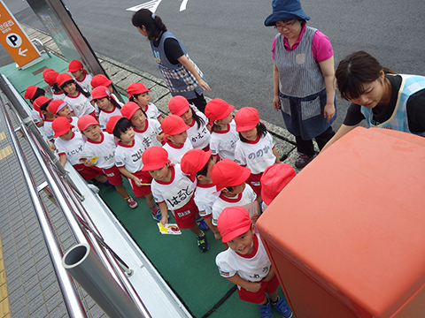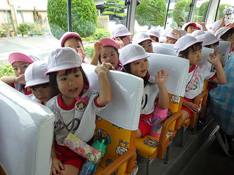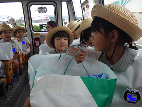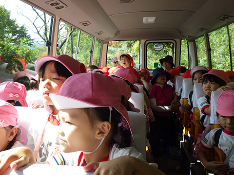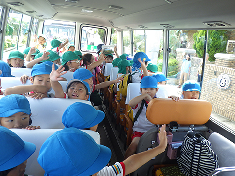 東相浦幼稚園の年長児とも合流し、バスに乗って