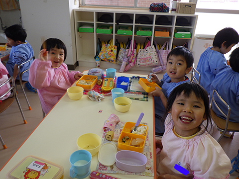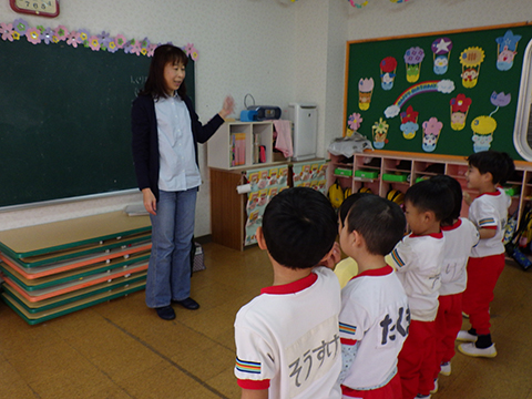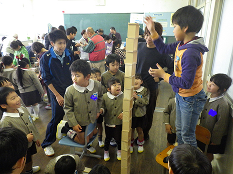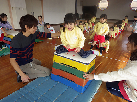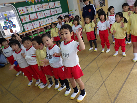 今日は年中児がお客さん役になって、はじめちゃんたちの応援