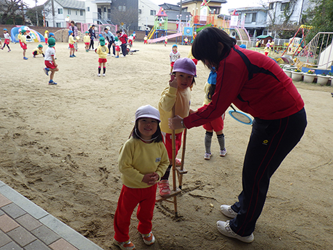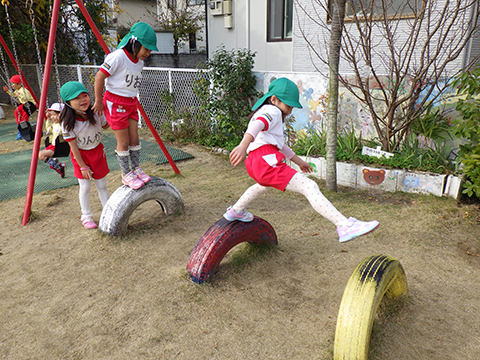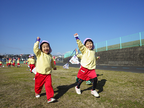 園庭よりも広い場所を縦横無尽に駆け回りました