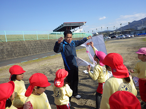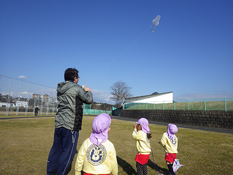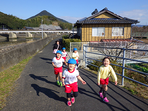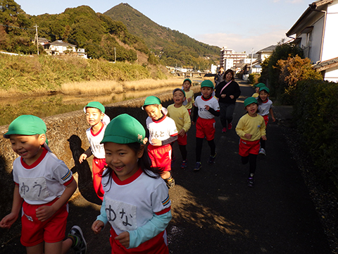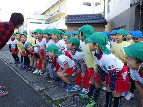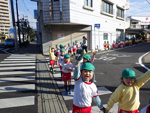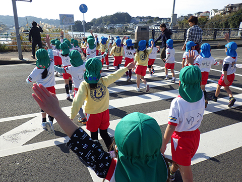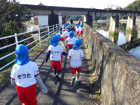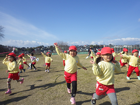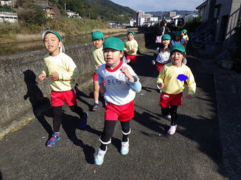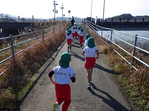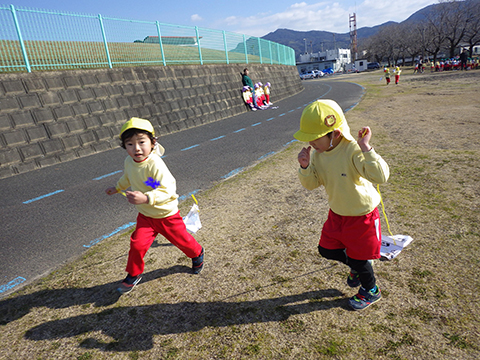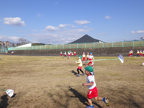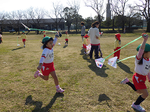 しかも、年長児はたこをあげる総合グラウンドまでマラソンで