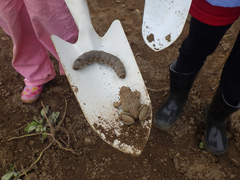 スコップで根気強く掘って穫れたときの嬉しさ、