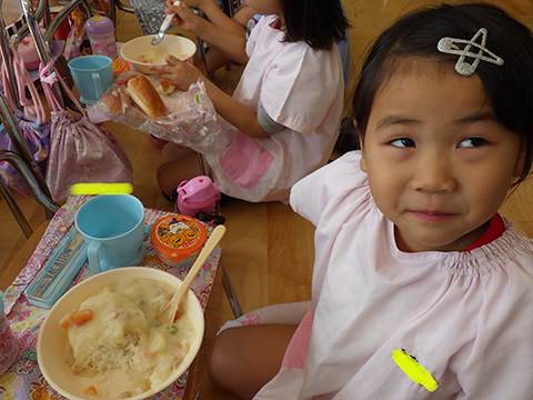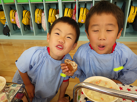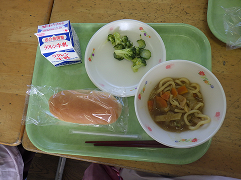 今日の給食はシチュー、そしてデザートはハロウィーン仕様