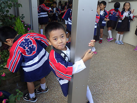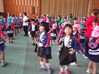 伝統を受け継いだ年中児も気合いの入ったかけ声!