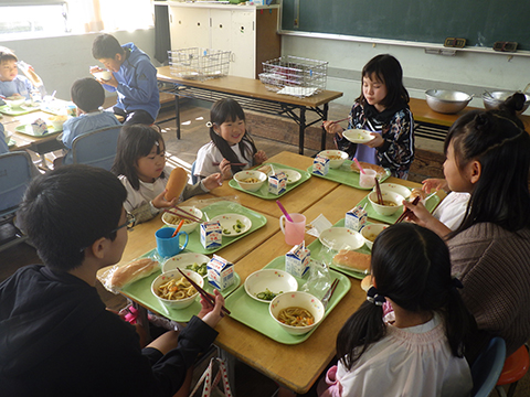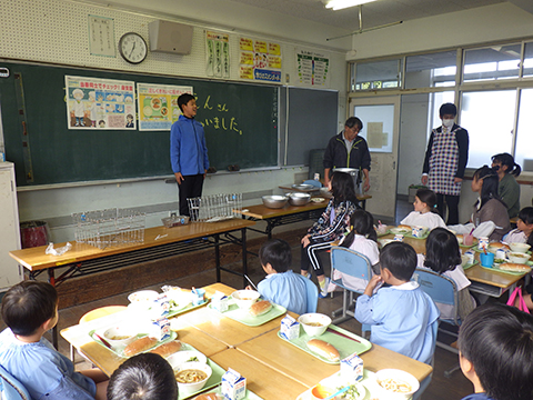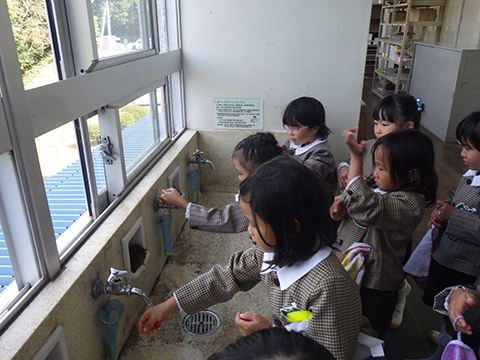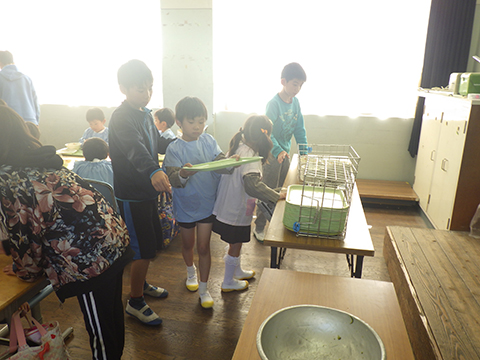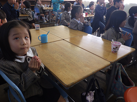 きれいに手を洗って、教頭先生・栄養士の先生の話を聞き、