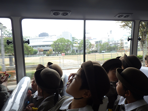 準備完了後、バスへ乗り込んで八の久保町へ!