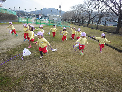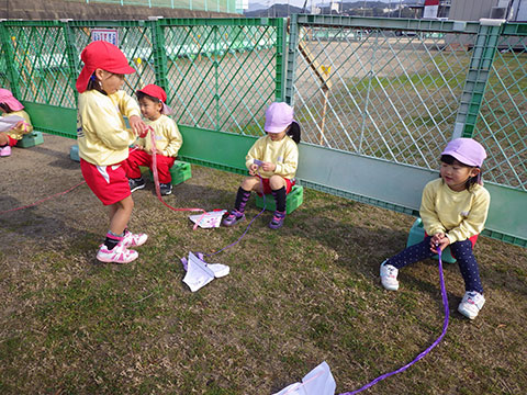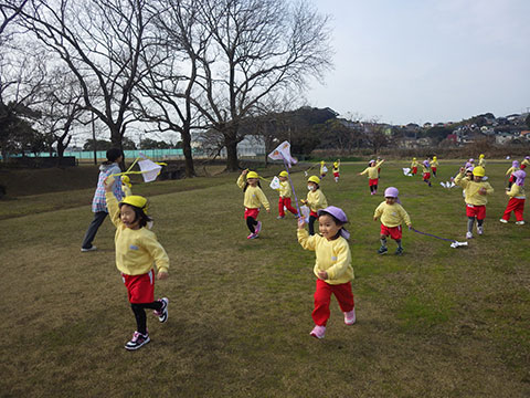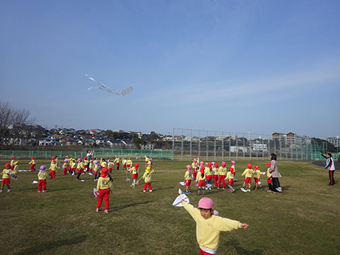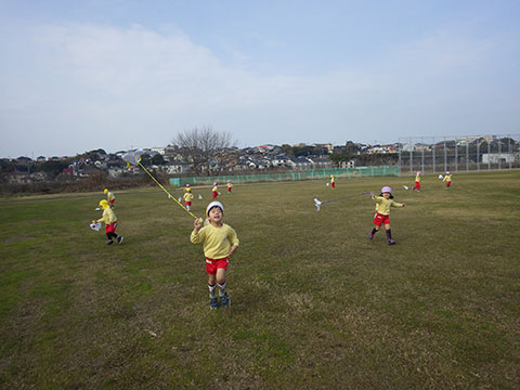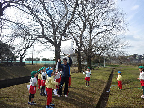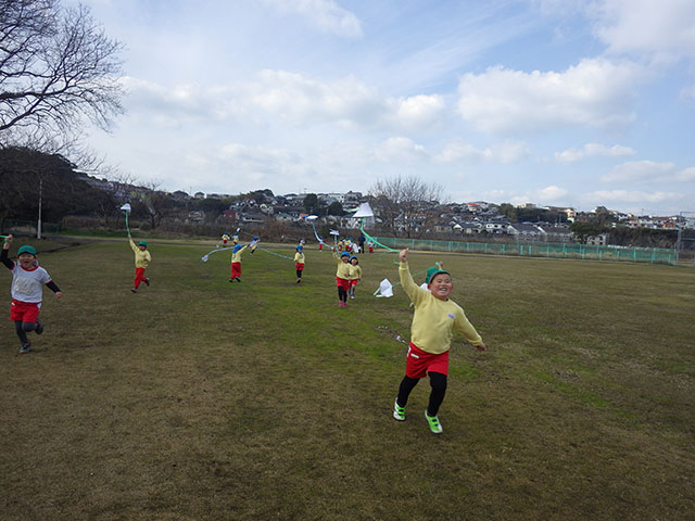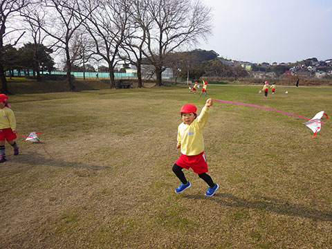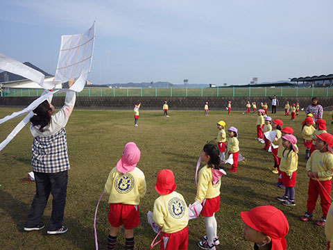 年中児、年少児が出かけたときは失敗でしたが、名人の巨大凧リベンジ!