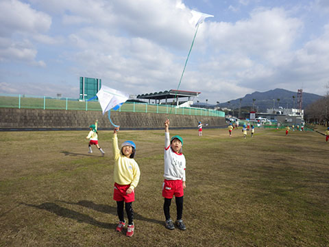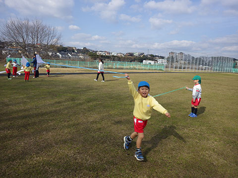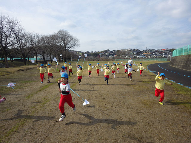 最後に全員でひとっ走りして、たこあげ終了!