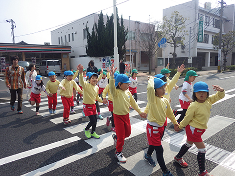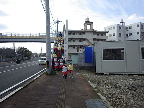 歩道橋を渡り、おゆうぎ会をおこなった公会堂の方向へ。