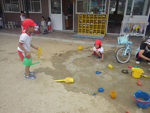 昨日に続いて本日も降園時間に雨が
