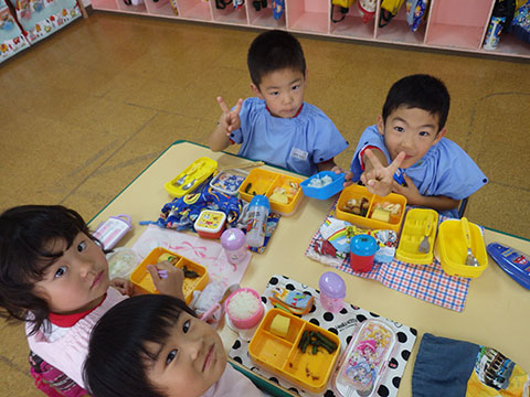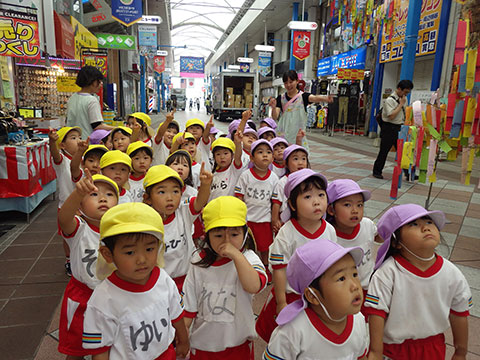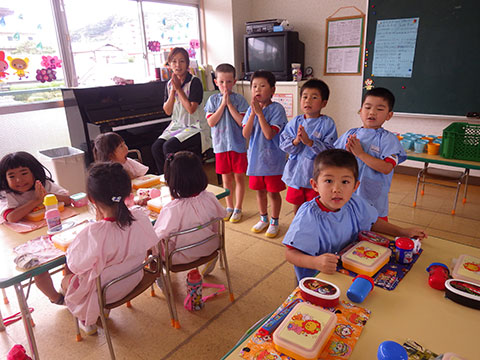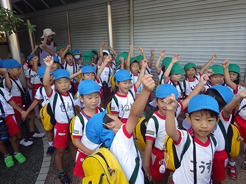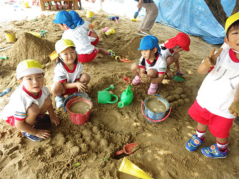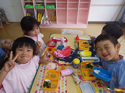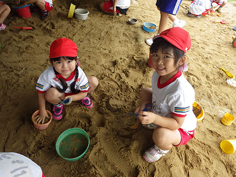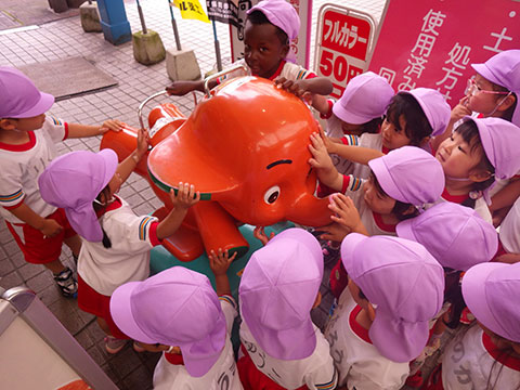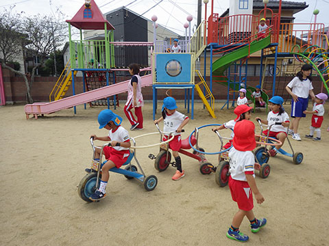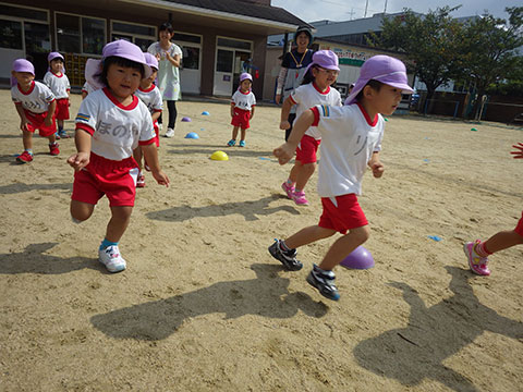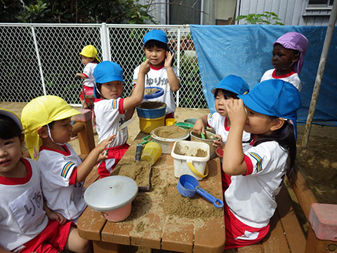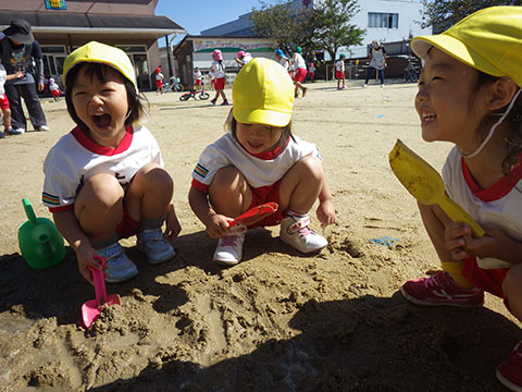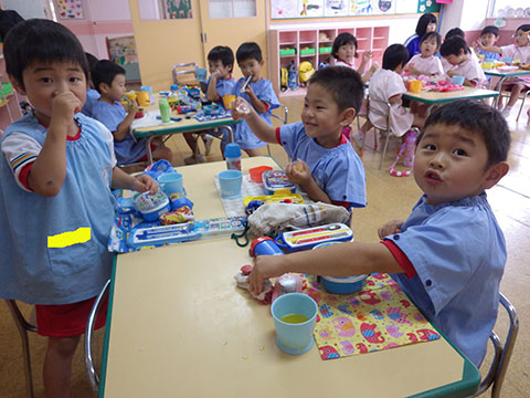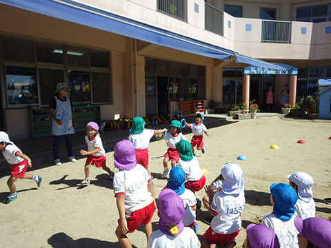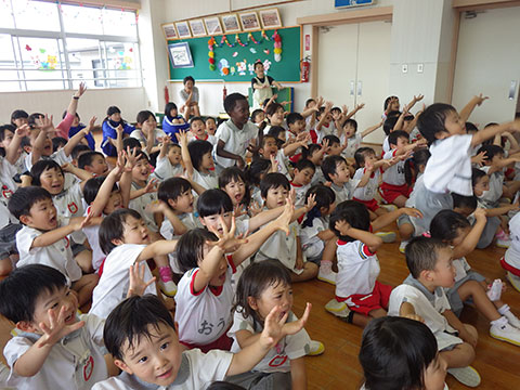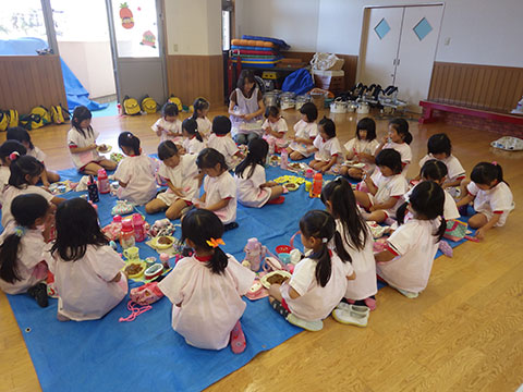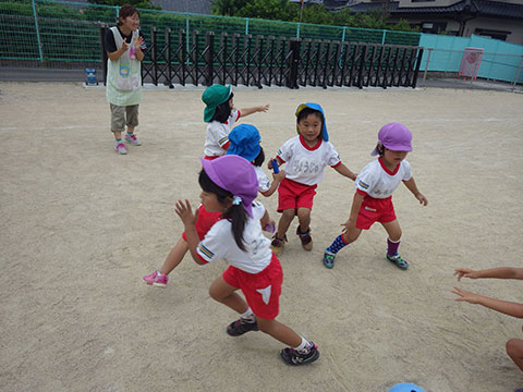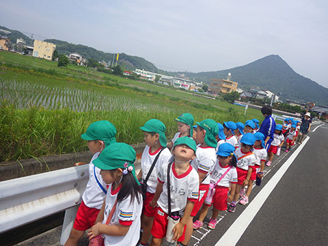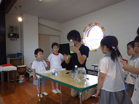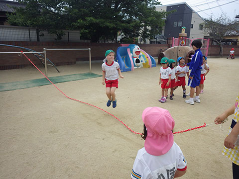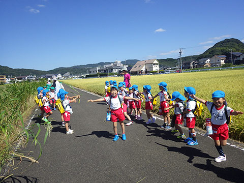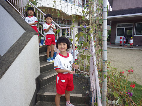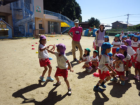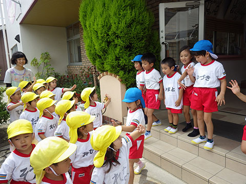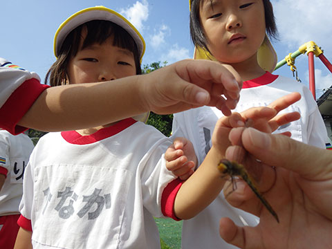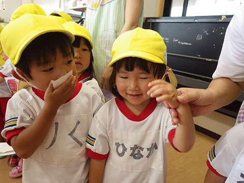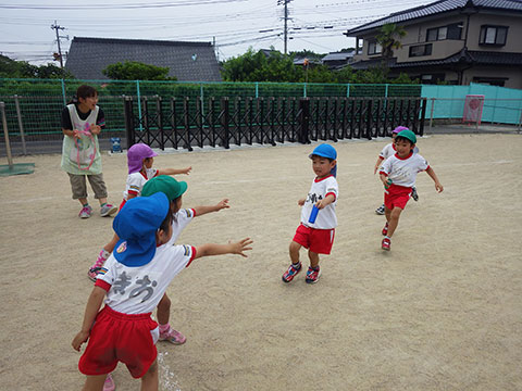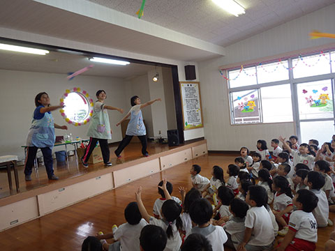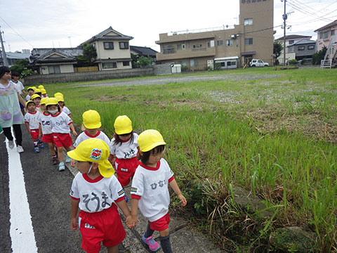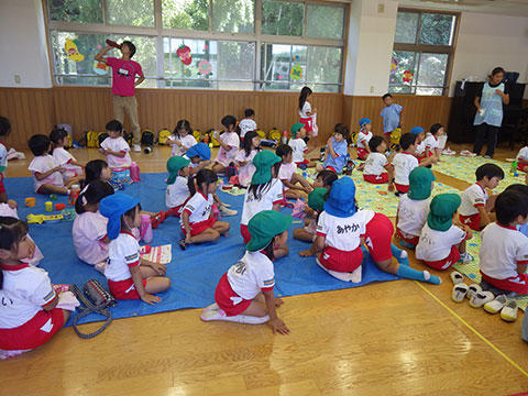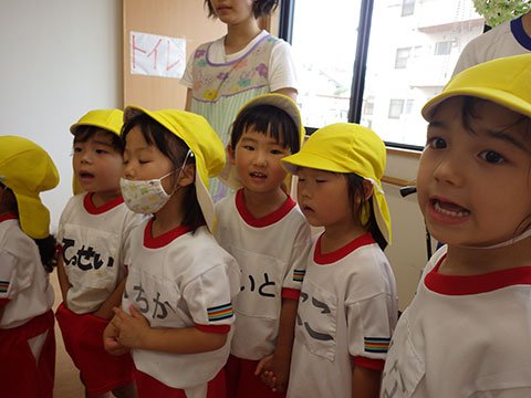 「♪かたつむり」や「♪かえるのがっしょう」を歌い、
