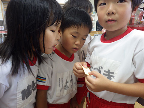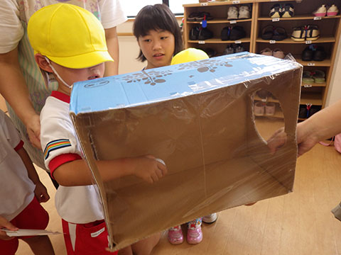 『カマキリのまねをする』『目隠しをして箱の中のものを当てる』という