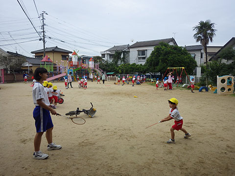 バドミントンが好きな年少児の男の子。