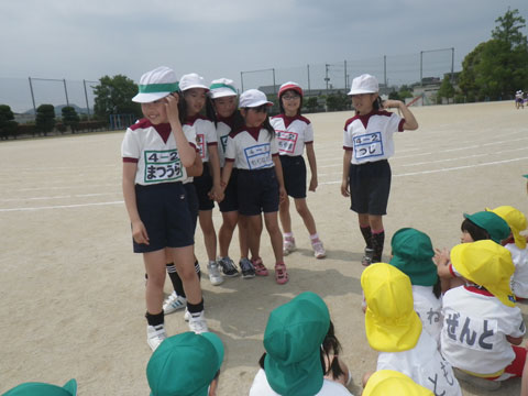 まつばやの前に・・、通り道にある相浦小学校で先輩たちが