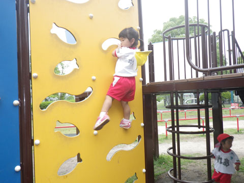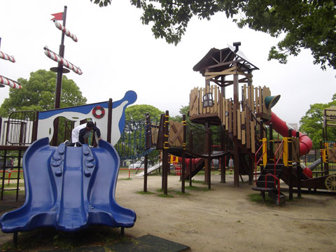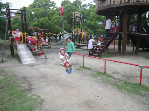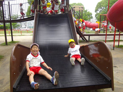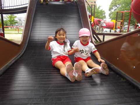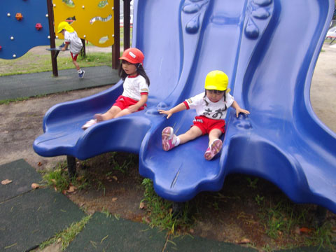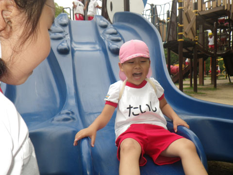 今朝少しパラついた雨の影響で若干すべり台が濡れていたので、