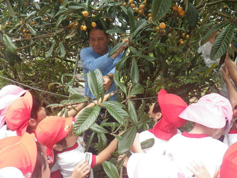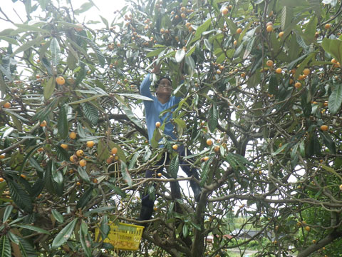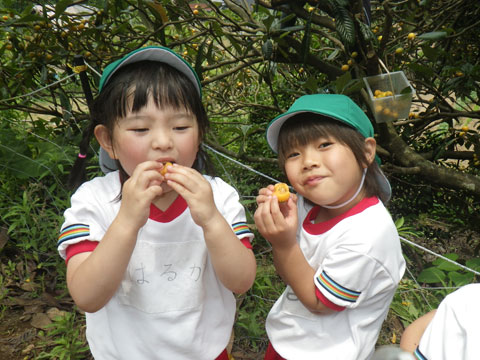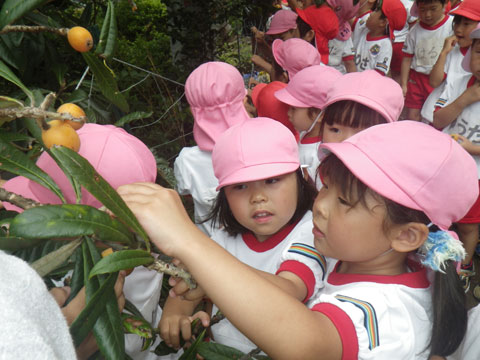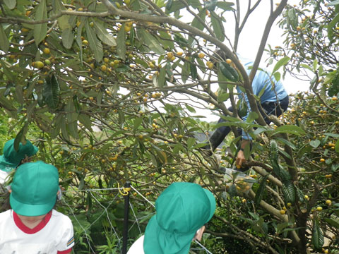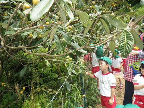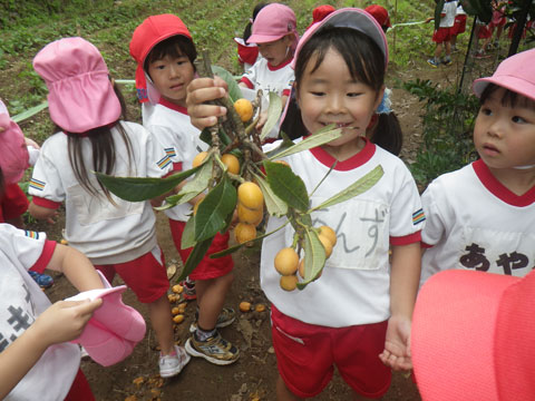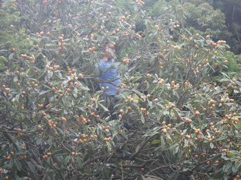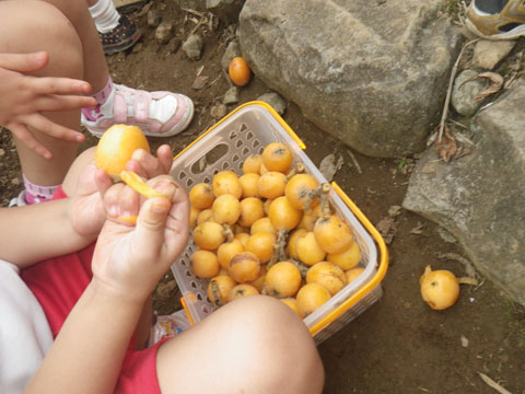 よりオレンジ色のビワを採って皮をむいてその場でパクリ