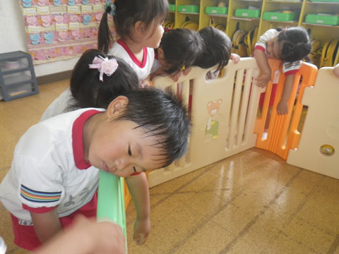 年長児は明日、『時計屋さん見学』へ行きますので今日は年中少児!