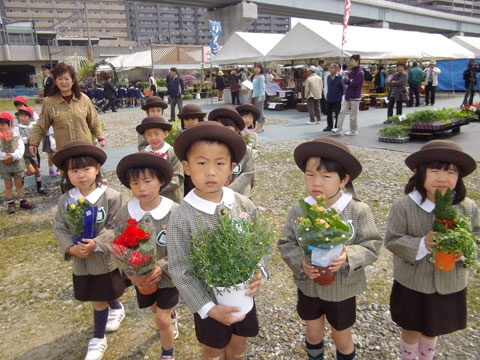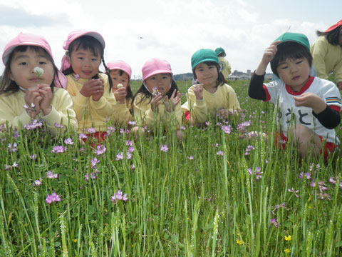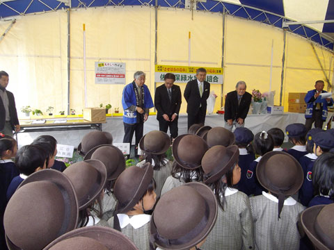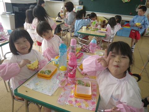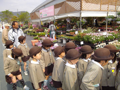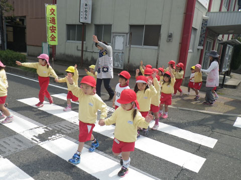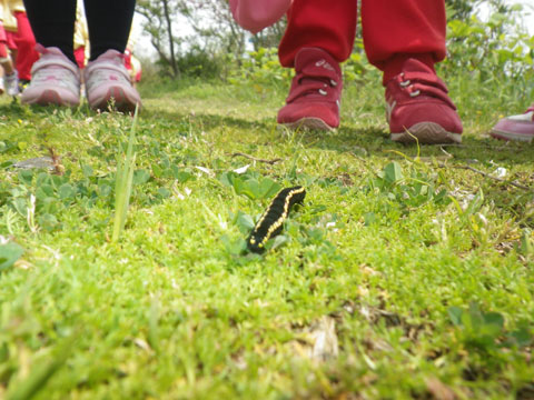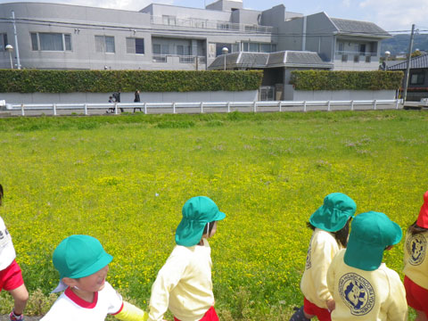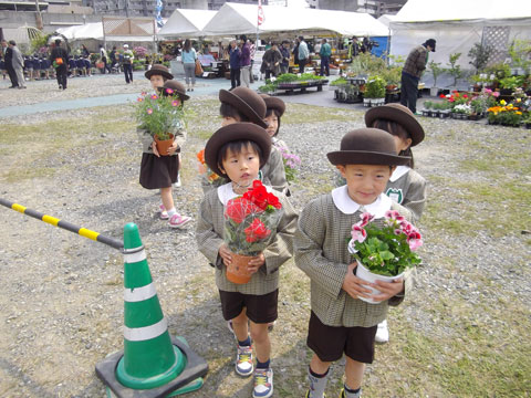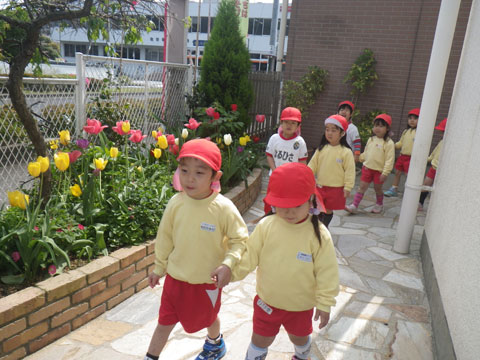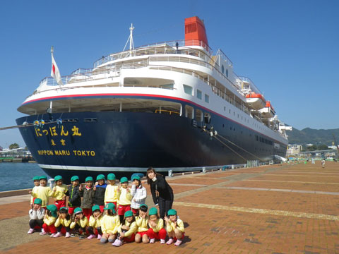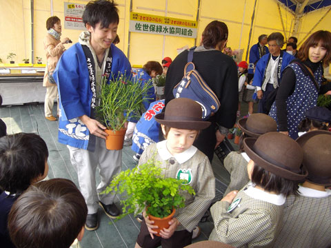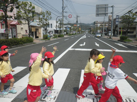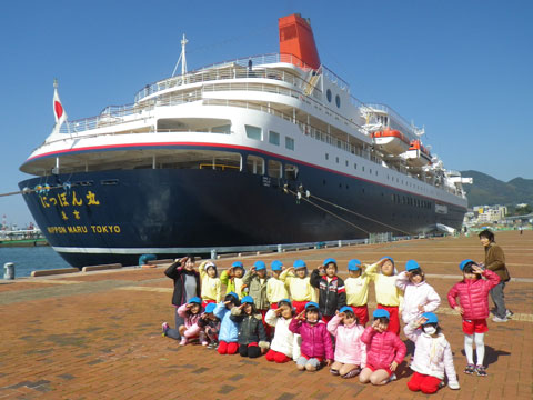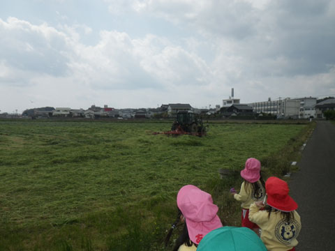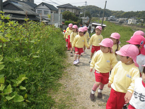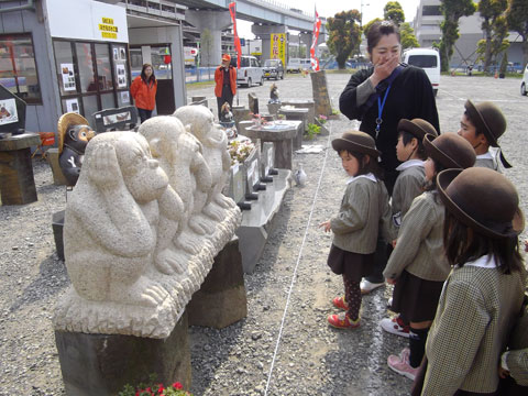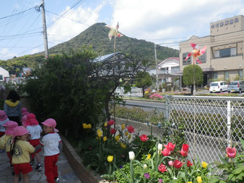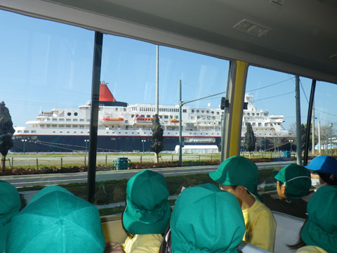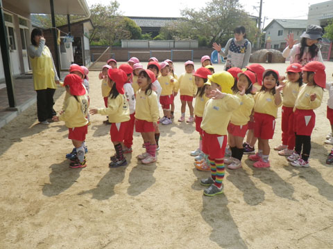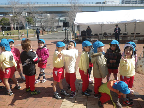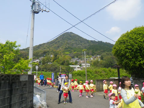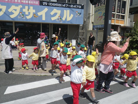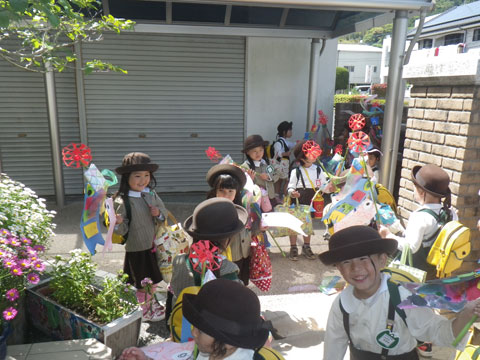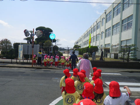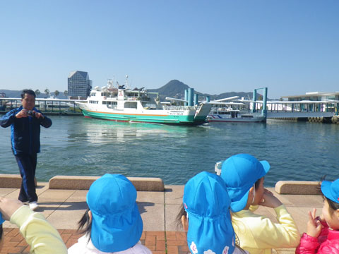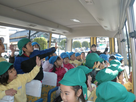 同じく見学に来ていた東相浦幼稚園児にもバイバーイ!またね〜!