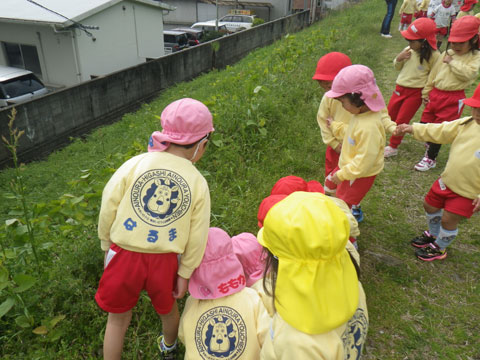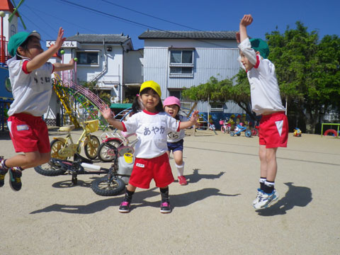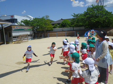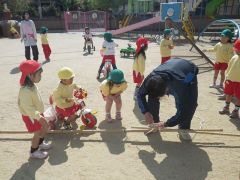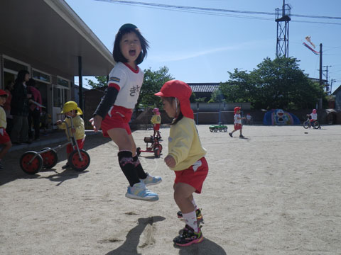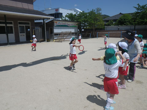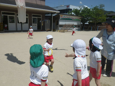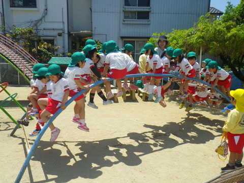 『たいこ橋 24人も 乗れました』年長児、本日もリレーに挑戦!