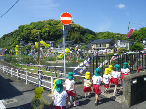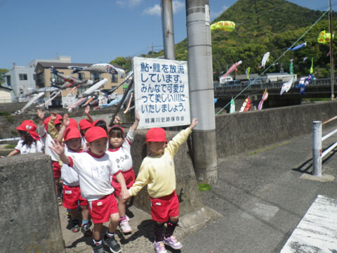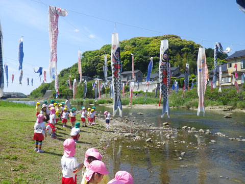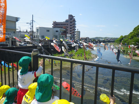 今、相浦川にはたくさんのこいのぼりが泳いでいます。