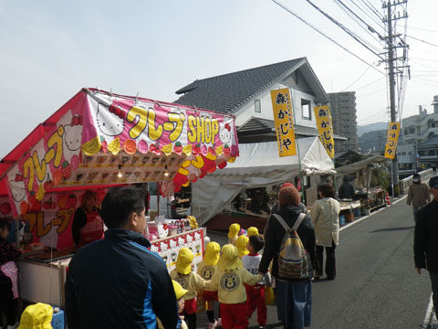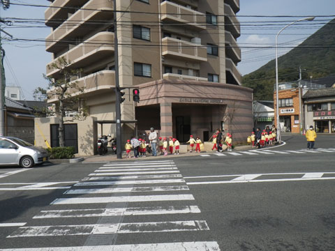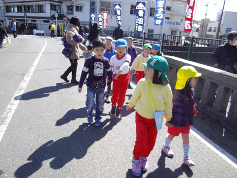 近所のお祭りに行かずにはおられない、練習を頑張ったので年長組さんが出発!