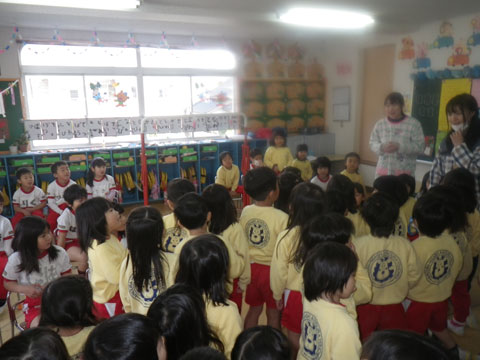 到着すると、おわかれ会練習中の年長クラスへ行って