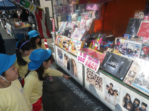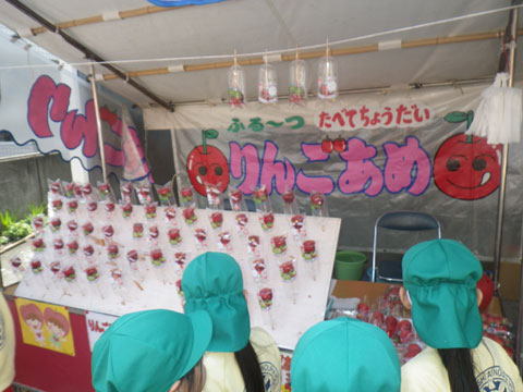 当たりくじの景品、AKBのポスターにりんご・いちご飴・・