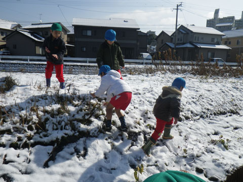 もうちょっとの辛抱ですが、暖かくなる頃には年長組さんは卒園!