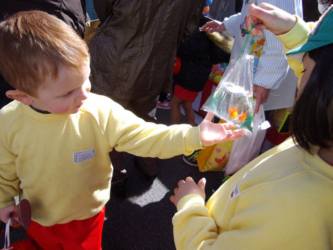 いろんな誘惑が多くて、お昼ごはん前の園児には我慢の時間