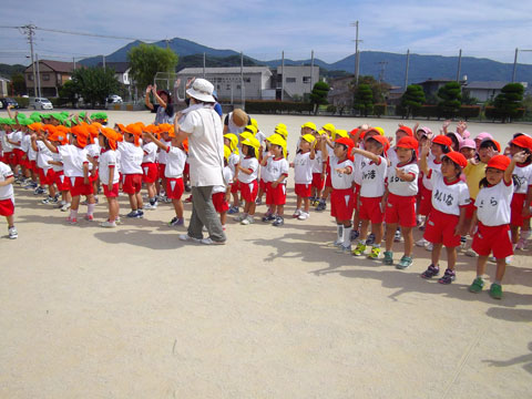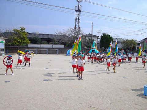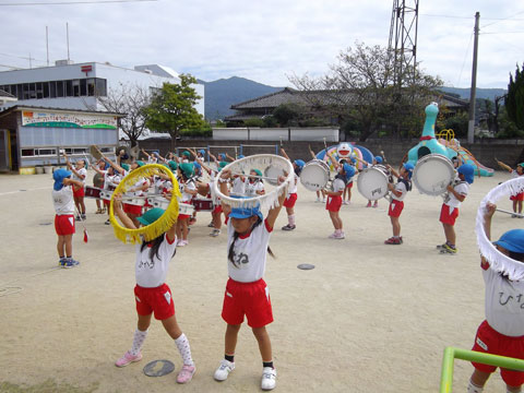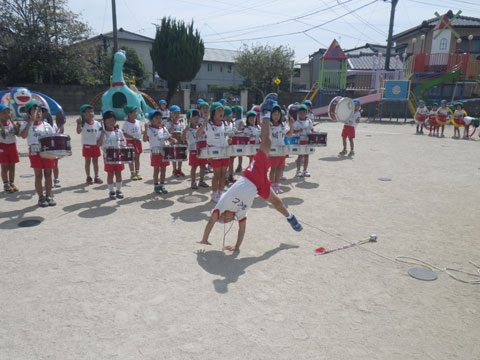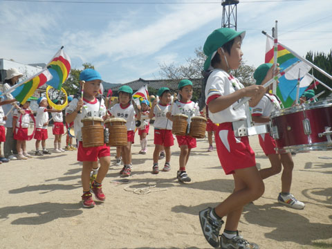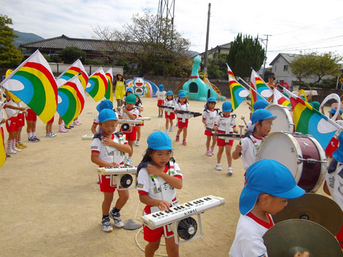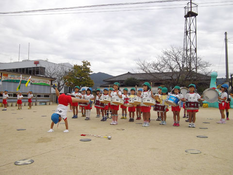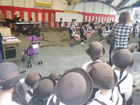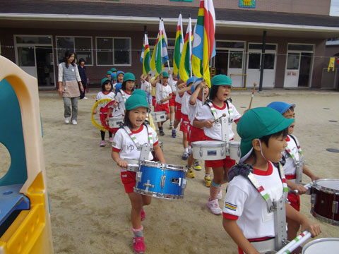 来週のマーチングを前に、他の幼稚園のマーチングバンドを