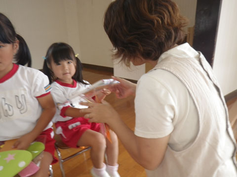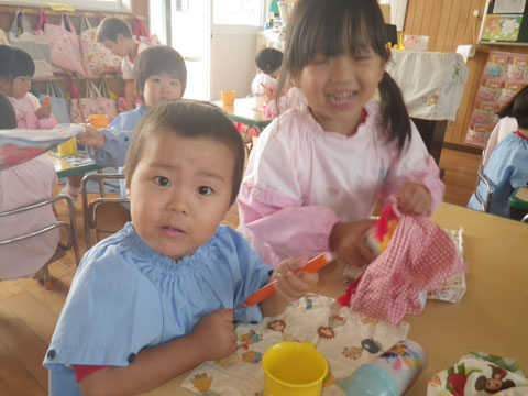 今日は10日間、たくさん遊んでくれた実習のお姉さん先生とのお別れを。