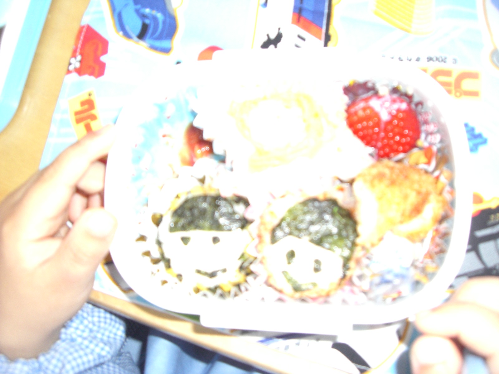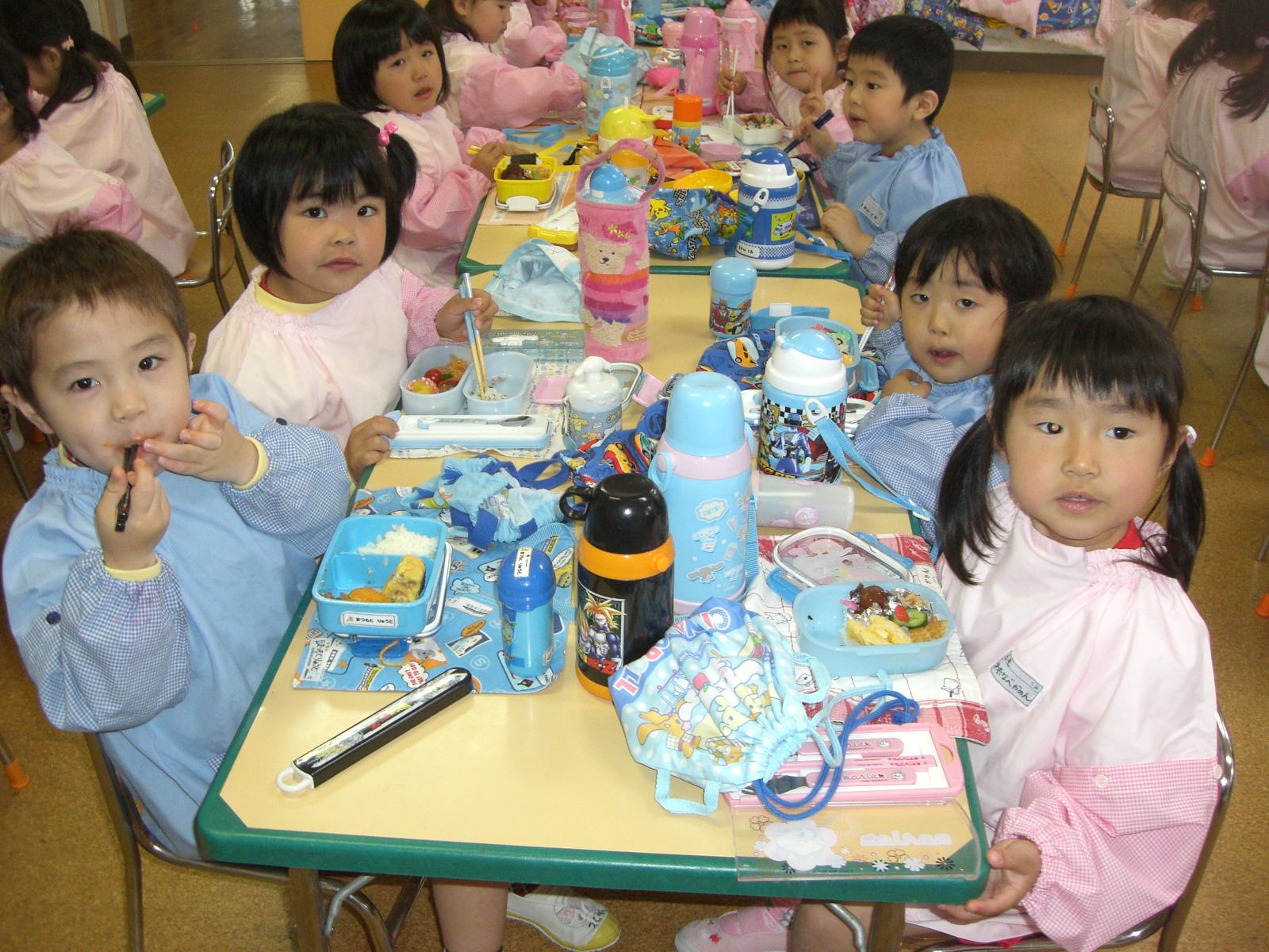 4月16日 今日から平常保育のはじまりです。 そして!今日は水曜日!おべんとうの日です   こんなおべんとうも・・・   お母さんの願いが込められています  この絵のようにみんな仲良くしようね