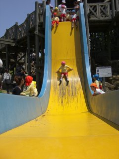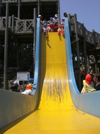 見ている方がハラハラする垂直すべり台!!