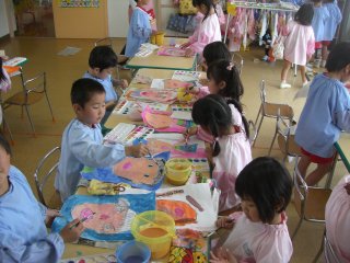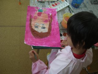 教室でお母さんの似顔絵を描きました