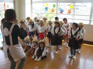 年長組さんはマーチングの練習も始まっています