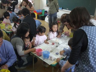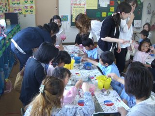 一緒に絵の具で色塗りをしたりと、とっても楽しそうでした
