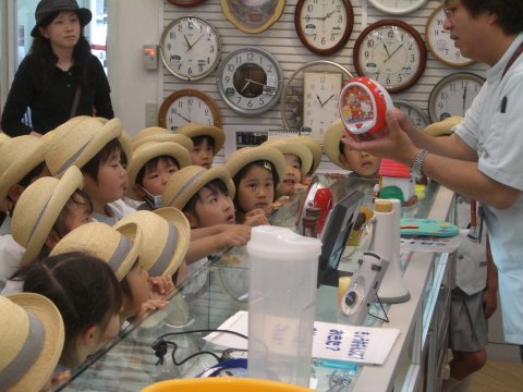 『でんぱどけい』などいろんな種類の時計を見せてもらい