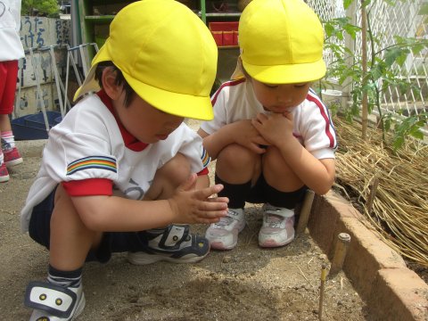 「クワガタが死んじゃったから、お墓を作ってお参りしてるの