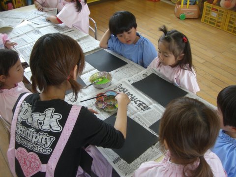 今日は、年中組のお友だちは、『父の日のプレゼント作り』