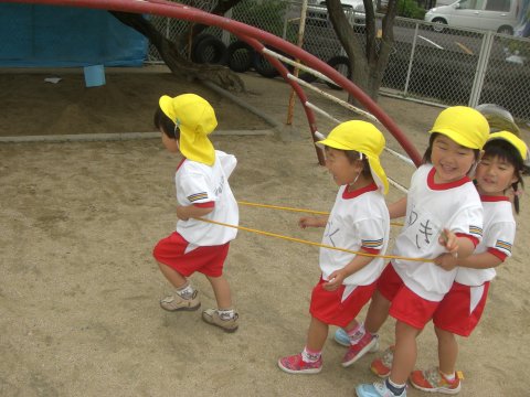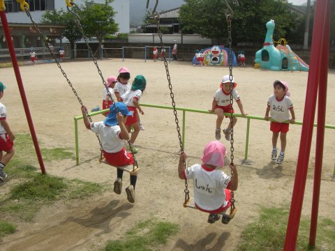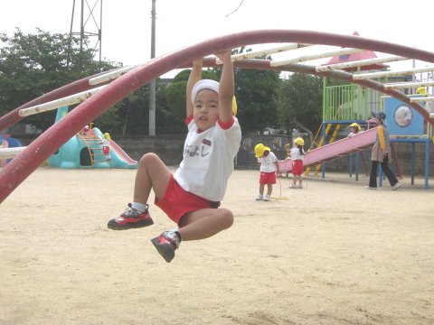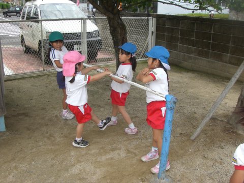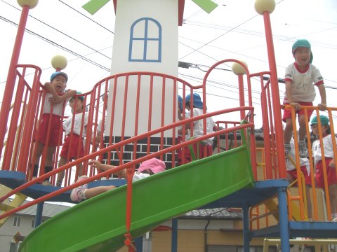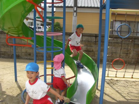 タイミング良く晴れ渡った空の下、室内だけでなく元気に外で遊ぶ子供たちの姿