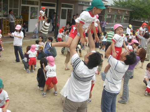 勝てば、高く抱っこしてもらえて、負ければ肩たたき