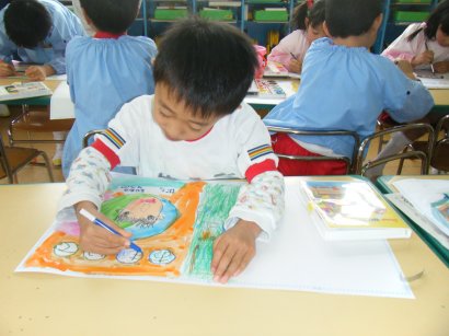写真撮影の後は、卒園アルバムの表紙づくり