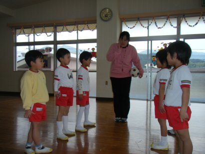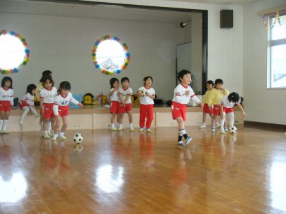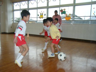 体育クラブは、なわとびとサッカーの試合