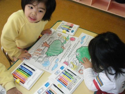 みんな嬉しそうに大好きなぬり絵を楽しんでいました