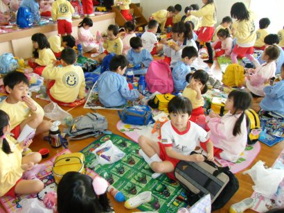 みんなで食べるにぎやかさや、おやつの交換など楽しそうでした