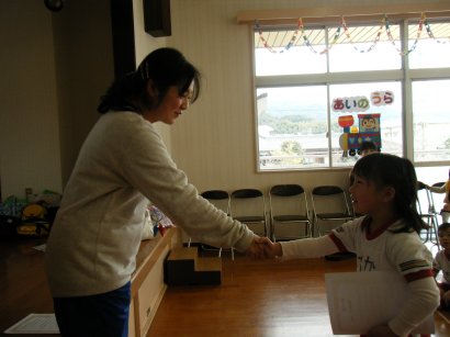 ちえせんせいとガッチリ握手をして、これからも頑張ることを誓いました!
