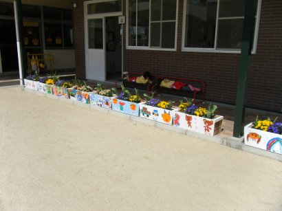 卒園記念の作品も、暖かい陽ざしの中 きれいな花が咲いていますよ