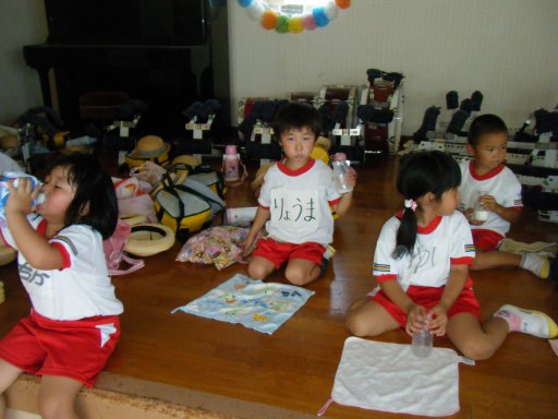 暑い中、よく頑張っています!水分補給を忘れないように!
