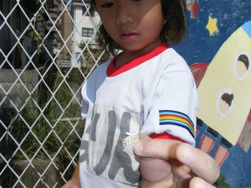 「せんせい〜とんでるちょうちょつかまえたよ〜!」
